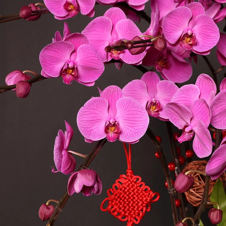 蝴蝶蘭的花朵艷麗嬌俏,賞花期長,花朵數多,能吸收室內有害氣體,既能凈化空氣又可作盆栽觀賞。還可用作切花、貴賓胸花、新娘捧花、花籃插花的高檔素材;在節日可用于饋贈。